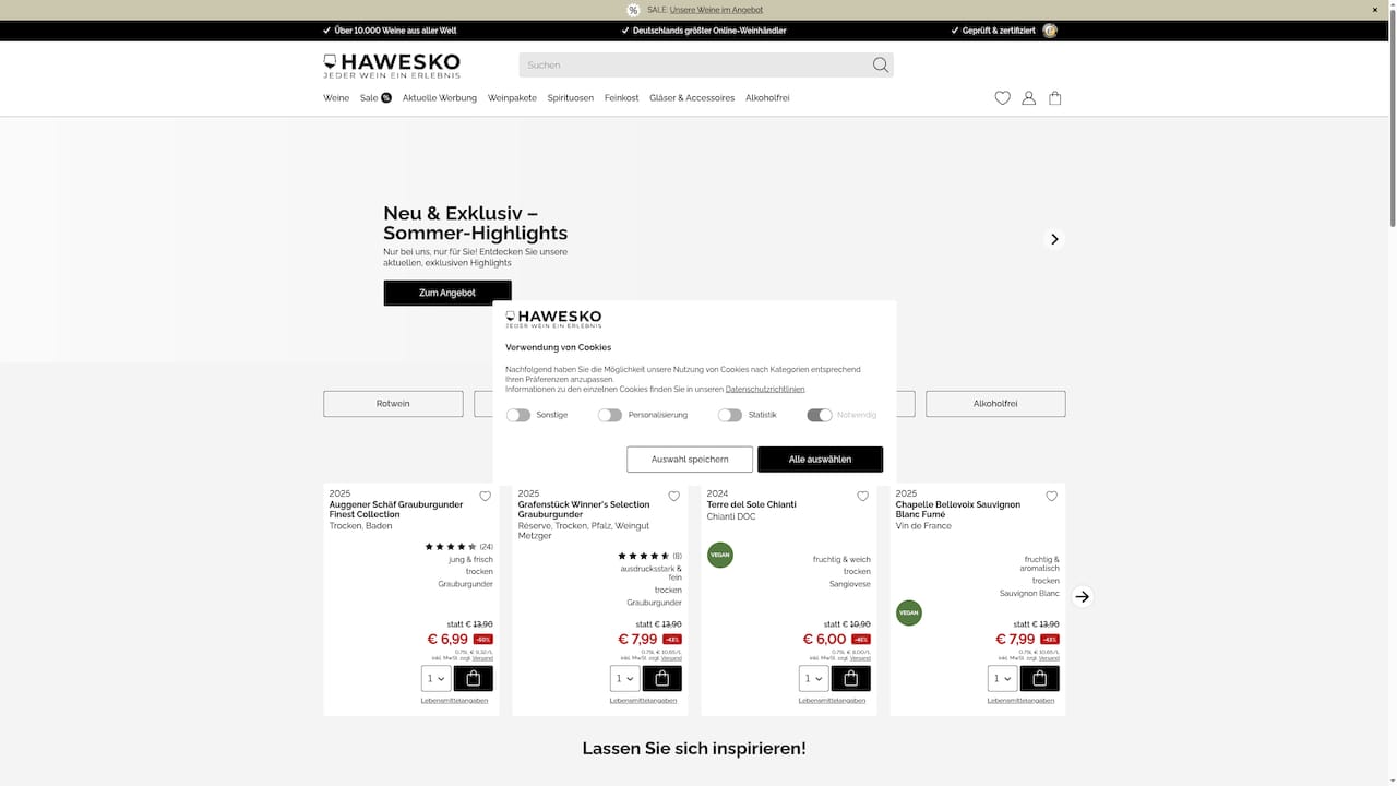 Das zentrale Merkmal von Hawesko ist die Kombination aus umfangreichem Sortiment und Serviceoptionen wie personalisierten Geschenken und Weinabonnements. Diese Mischung macht die Plattform zur Anlaufstelle für Kunden, die mehr als nur einen schnellen Einkauf wollen.